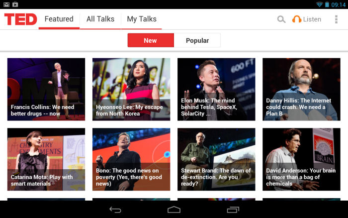 I always find TED talks inspiring, and the free TED android application, enables me to quickly find a TED video to watch.