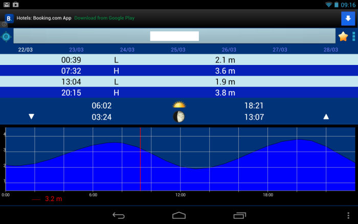 Is there an Android application that shows UK tides? You betcha! From my lounge window I have a view of the sea, but it is hard to judge whether a tide is coming in or out. Also occasionally I want to visit beaches further afield, and have a look at the rock pools.
