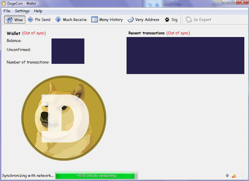 Next you run the dogecoin-qt application, and you let it sync. It took over an hour to sync on my computer, so don’t expect it to sync quickly.