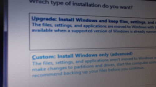 Now that Windows 7 was already installed, it was time to install Windows 8. I placed the Windows 8 32-bit DVD into the drive and booted from the DVD.