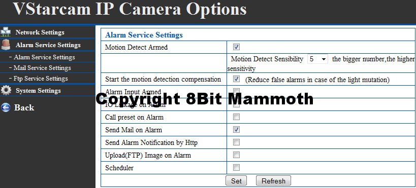 I set the device to send me emails with picture attachments when motion detection occurred. Other than a few motion detection emails, which I’ve put down to sudden light changes, it worked without any issues.