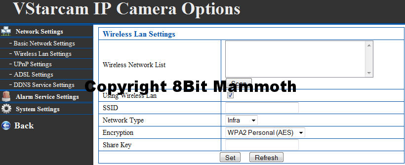 Now you should be able to disconnect an ethernet lead and configure the Ipcam via a wireless connection.