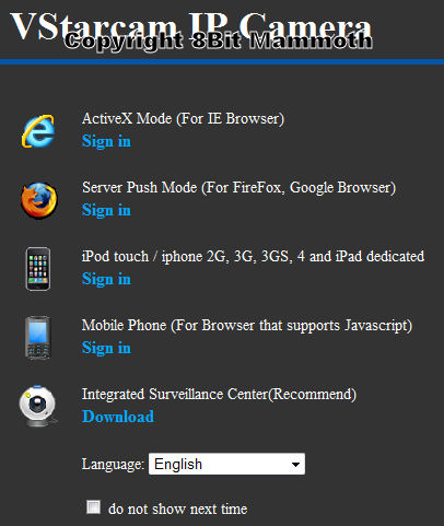 - Open a web browser and type in the ip address and port number. i.e. 192.168.1.122:81