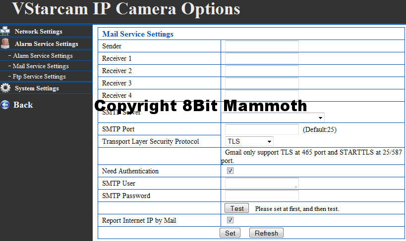 Now if you told the device to send emails, you need to add an email account and SMTP server details. I suggest you setup an email account specifically for the device!