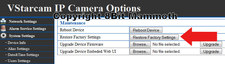 I hadn’t used it for ages and when I turned it on, I discovered some of the functionality wasn’t working. So this is what I did to reset the Vstarcam IP camera: