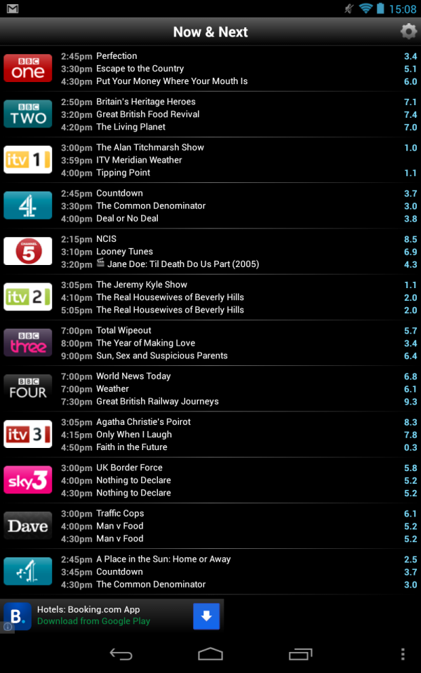 Just as well I’m using this TV listing application, as my TV box regularly crashes when I open the EPG!