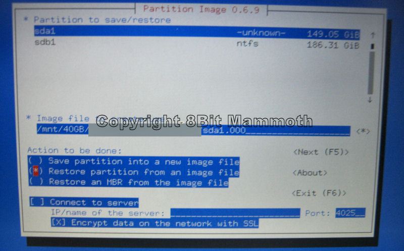 - With the partition image to be restored readable, run the Partimage software.