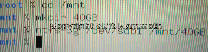- Finally I typed ntfs-3g /dev/sdb1 /mnt/40GB (the external HD was NTFS formatted).